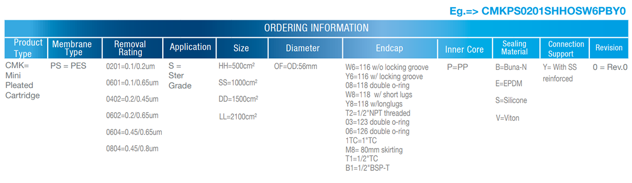 CMK sterilizing Grade Filter Polyethersulfone Cartridge are 100% integrity tested; it is constructed of double layer hydrophilic asymmetric polyethersulfone membrane. It offers broad chemical compatibility, high flow rates at low pressure drops, and low extractables.