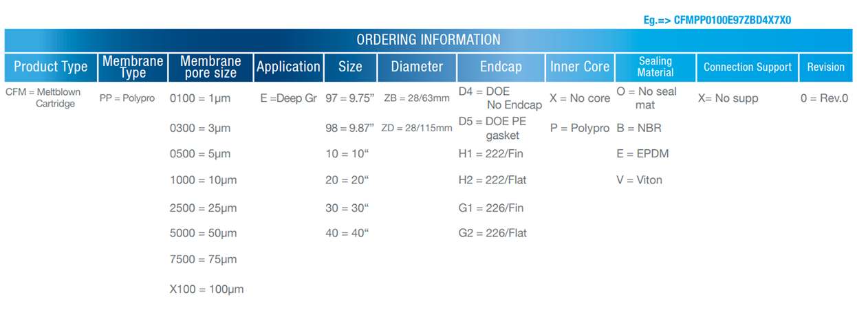 CFM series PP Melt Deep Groove Filter Cartridges are fused and intertwined with polypropylene resin without any chemical glues. The cartridge is glued at random to form 3D micro porea which will make the cartridge’s 3 layers with fibers on the surface and inside.