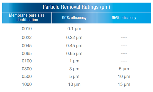 Nominal rated structure, particle removal rating from 0.1 to 50 Micron