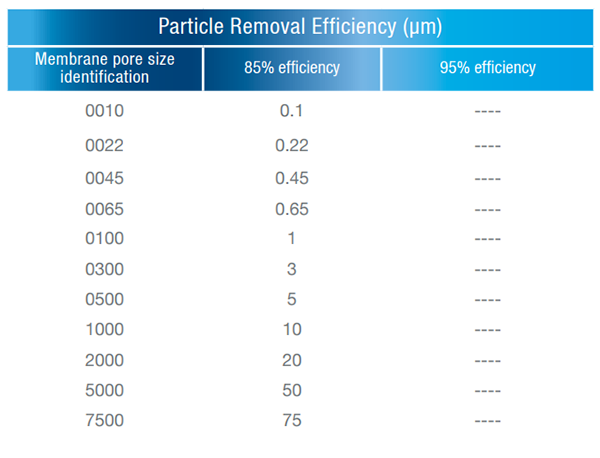 Nominal rated structure, particle removal rating from 0.1 to 50 Micron