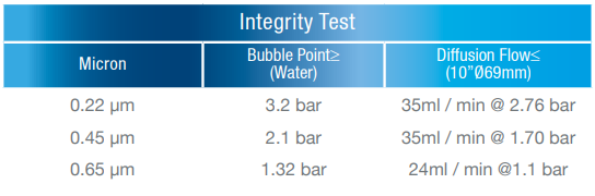 Each membrane filter element has been individually tested for integrity.