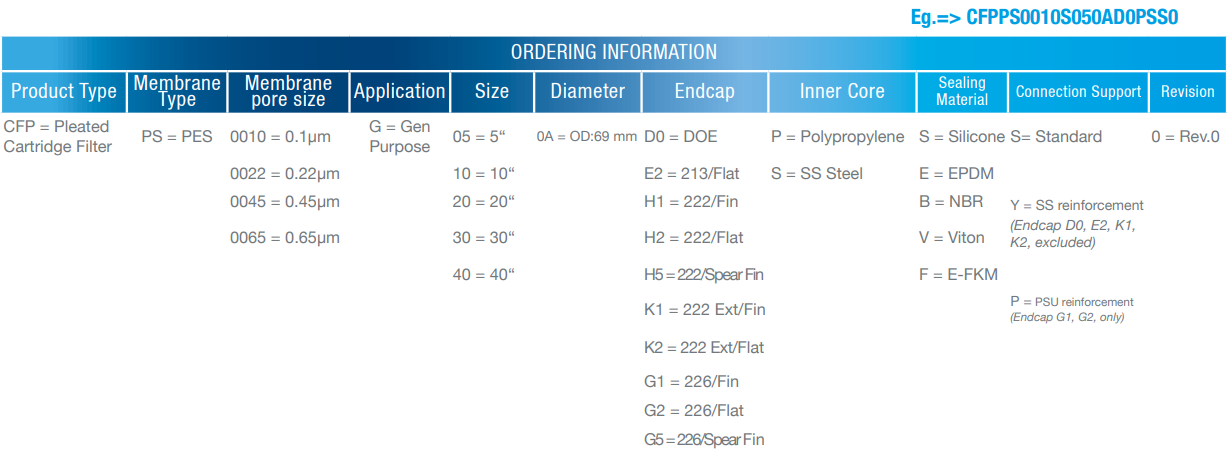 CFP series High Asymmetric Polyethersulfone (PES) pleated filter cartridges are made of hydrophilic high asymmetric polyethersulfone membrane, can provide exceptionally high flow rate and long service life for processing large fluid volumes. It has excellent retention of microorganisms for superior protection of final filters. This characteristic especially suits for Food and Beverage filtration.
